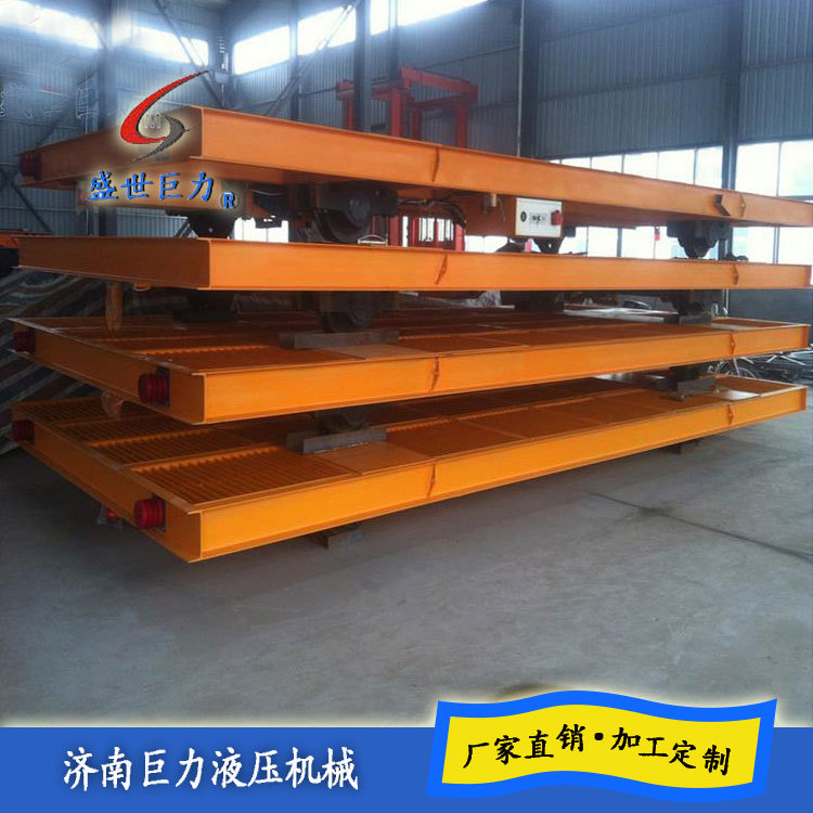 济南巨力液压机械专业生产的电动平车,又称电动平板车、电平车、台车、过跨车、电动轨道车、地爬车等,是一种厂内有轨电动运输车辆,首先它是一种轨道型运输车辆,需要在地面上铺设轨道,轨道一般为工字型面接触道轨;其次它是电驱动车辆,在电机减速机驱动下自动运行,再次它是一种平板车,台面平整无厢盖,特殊情况下也可以是非平面但无厢盖,车体无方向盘只有前进后退方向(即使转弯也城靠轨道转弯)。此种车辆具有结构简单、使用方便、承载能力大、不怕脏不怕砸、维护容易、使用寿命长等特点,因其方便、壮实、经济、实用、易清理等诸多优点,成为企业厂房内部及厂房与厂房之间短距离定点频繁运载重物的运输工具。